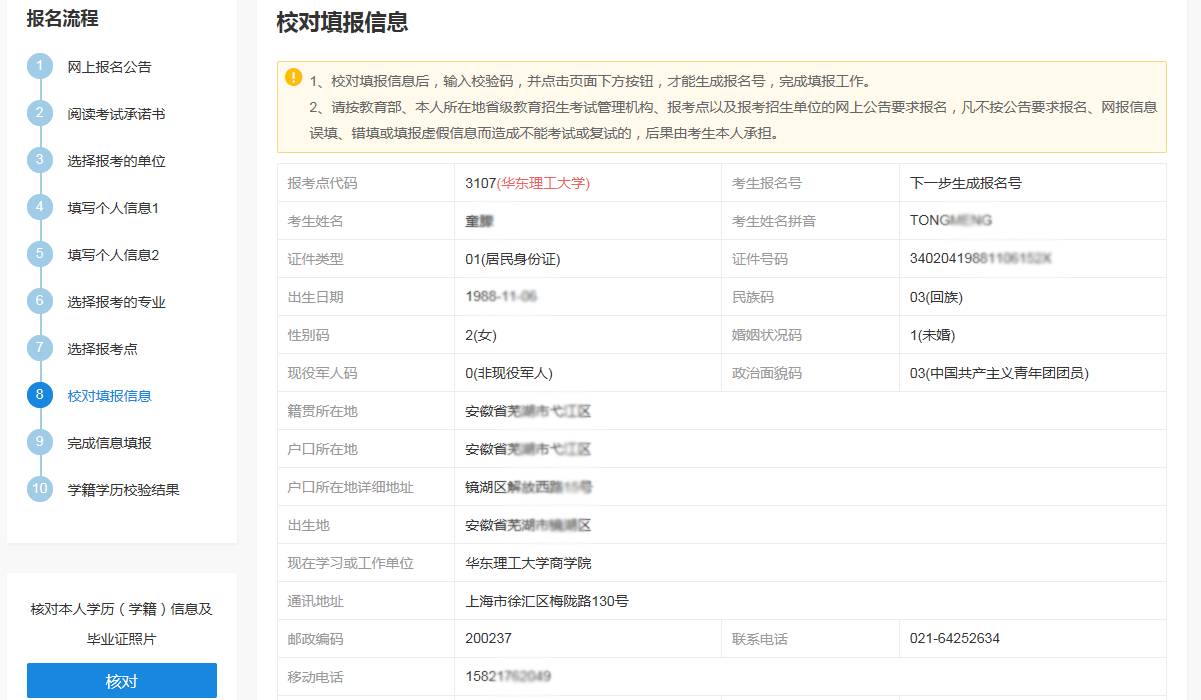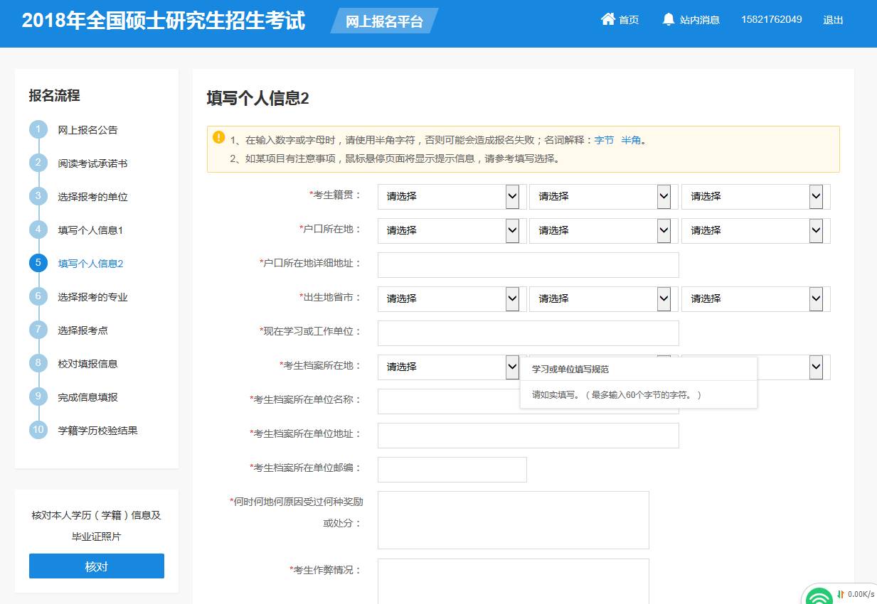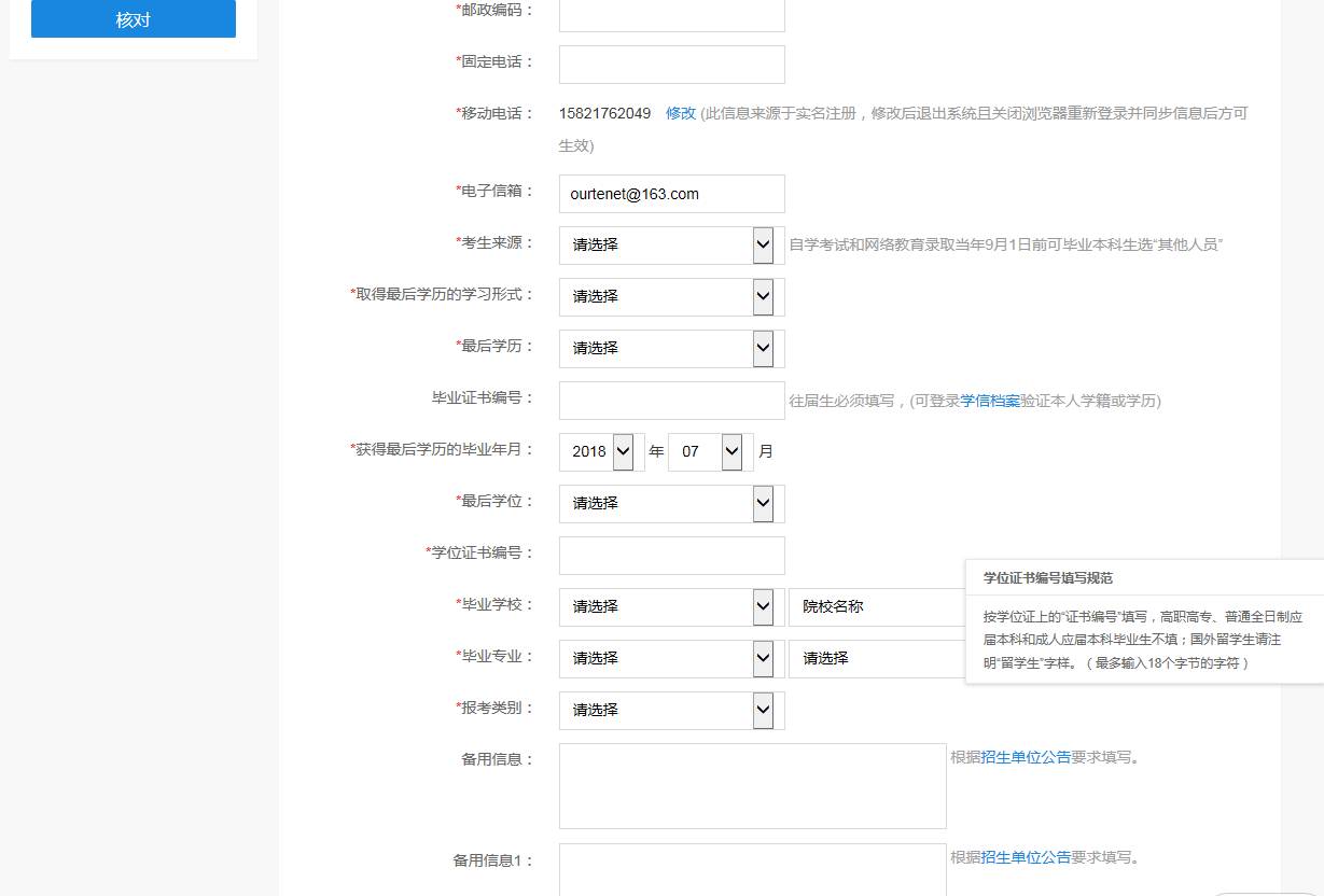 第八,如果考生暂时不清楚自己的档案所在单位、所在地等信息可填写公司地址,入学后会再次核对。