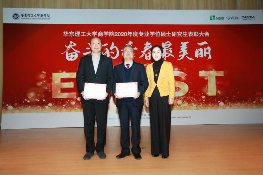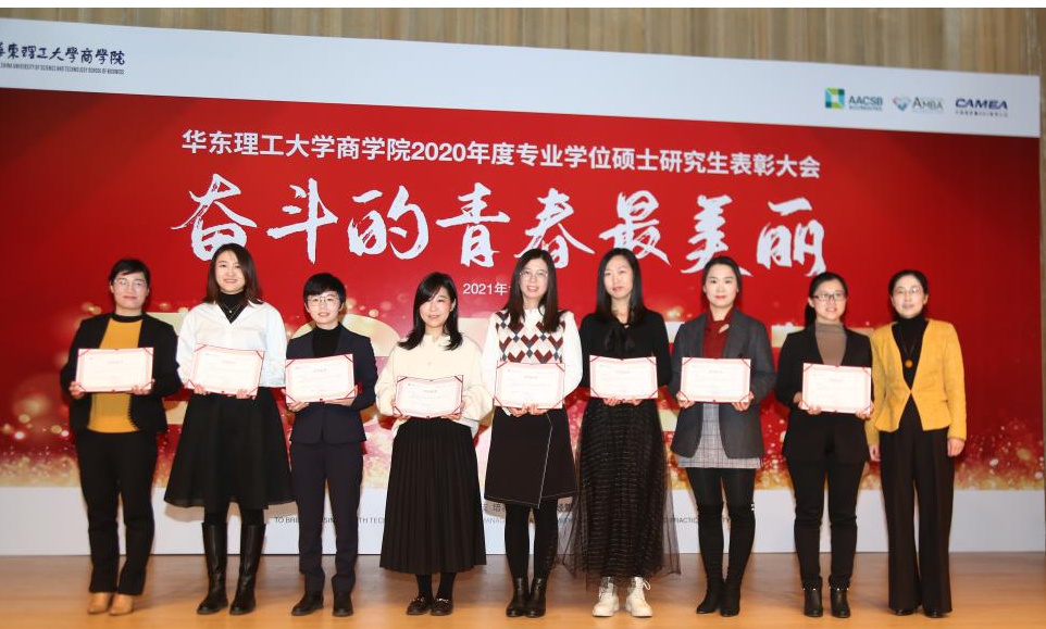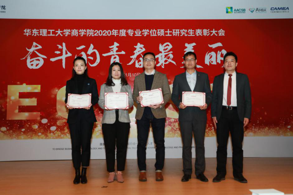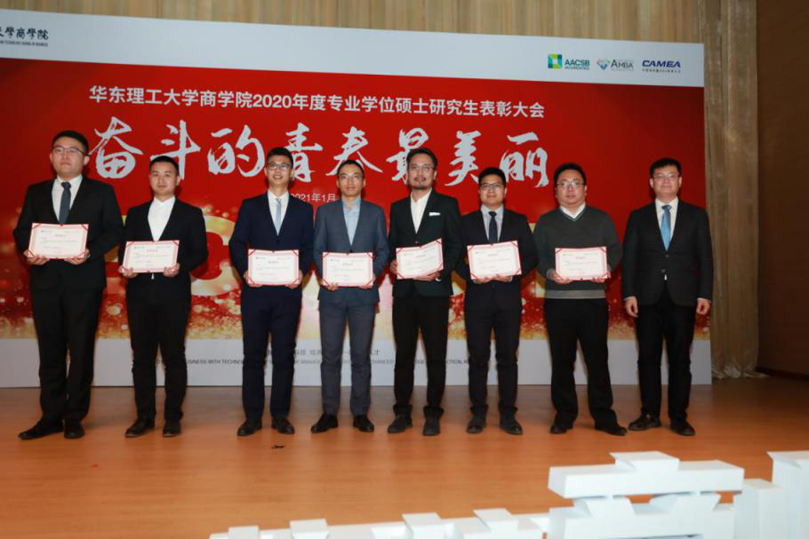 2021年1月10日,商学院2020年度专业学位硕士研究生表彰会盛大召开。商学院副院长、专业学位教育中心主任侯丽敏,院长助理赵炎、陈庆升以及各项目部负责老师、优秀学生代表、校友代表共同见证了这一重要时刻。本次年度表彰会由学生孟子翰、朱琳、王惠主持。